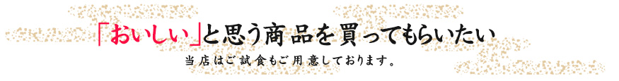 当店では、私たちが実際に試食し『おいしい』と思う商品を厳選し取り扱っております。一部の商品では、お客様にも試食していただきながら丁寧な説明を心掛け、真面目に、真心こめております。 地元・函館のお客様はもちろん、全国のお客様にお届けしています。 |