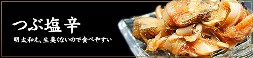 北海道産のつぶ貝をピリッと辛い明太和えにしました。 酒のつまみに最高! |